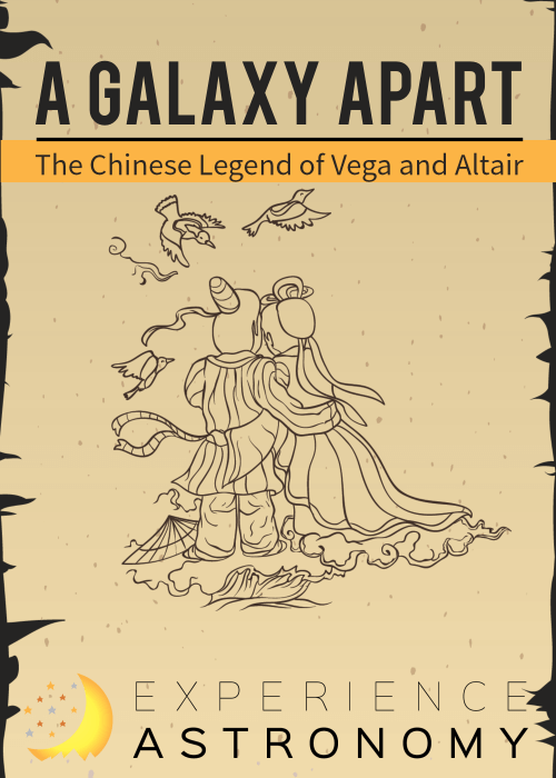 This is a story of an old Chinese legend about two stars, Altair and Vega, in the constellations Aquila and Lyra. In this legend, two people are joined together in love but separated by the stars.