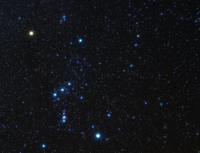 Orion is a constellation easily visible in the evening in December, January, February, and March. It contains some of the brightest stars in the night sky, and for this reason, many cultures around the world have stories associated with these stars.